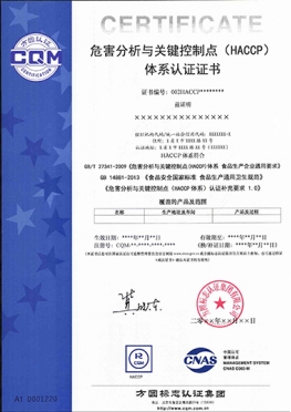2. 認(rèn)證用標(biāo)準(zhǔn): 危害分析與關(guān)鍵控制點(diǎn)(HACCP )體系認(rèn)證