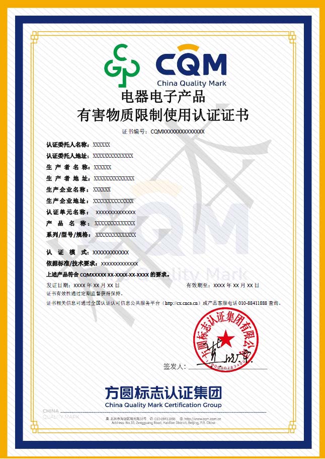 電器電子產(chǎn)品有害物質(zhì)限制使用產(chǎn)品(簡稱RoHS)認證是指由認證機構(gòu)證明電器電子產(chǎn)品符合相關(guān)有害物質(zhì)限制使用標(biāo)準(zhǔn)和技術(shù)規(guī)范要求,由國家統(tǒng)一推行并規(guī)范管理的認證活動。旨在從源頭上限制電器電子產(chǎn)品有害物質(zhì)使用,減少產(chǎn)品廢棄后對環(huán)境造成的污染,促進電器電子行業(yè)的清潔生產(chǎn)和資源綜合利用,推動電子信息產(chǎn)業(yè)持續(xù)、健康發(fā)展,促進低污染電子信息產(chǎn)品的生產(chǎn)和銷售,保護生態(tài)環(huán)境和人體健康安全。RoHS 國推自愿性認證的目的在于減少或消除電子信息產(chǎn)品中的鉛、汞、鎘、六價鉻、多溴聯(lián)苯和多溴聯(lián)苯醚共6 項物質(zhì)以及國家規(guī)定的其他有害物質(zhì),該認證適用于整機、組件、部件及元器件、材料等產(chǎn)品。